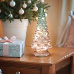 14" Lit Pink Glass Tabletop Tree