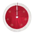 48" Red Snowflake Embroidered Tree Skirt With Faux Fur Trim