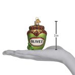 Olives are widely cultivated from evergreen trees that yield this delicious fruit. Native to warm regions of the Old World, olives have been used as food and a source of oil for centuries. Olives symbolize peace so offering the jar of olives ornament can symbolize