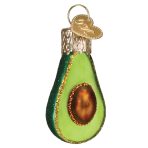 Legend has it that the first avocado was eaten by a Mayan Princess in Mexico around 300 B.C.It is also known as the “alligator pear” which describes the fruit’s texture and pear shape. This beautiful glass ornament was carefully crafted for you to enjoy as a holiday decoration.