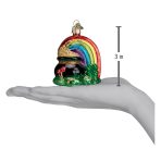 The luck of the Irish is sure to come to the owner of this beautiful ornament, for it carries three lucky symbols. First is the legendary pot of Leprechaun’s gold found at the end of the rainbow. Second is the rare four leaf clover. Third is the double mushroom, which doubles the good luck!